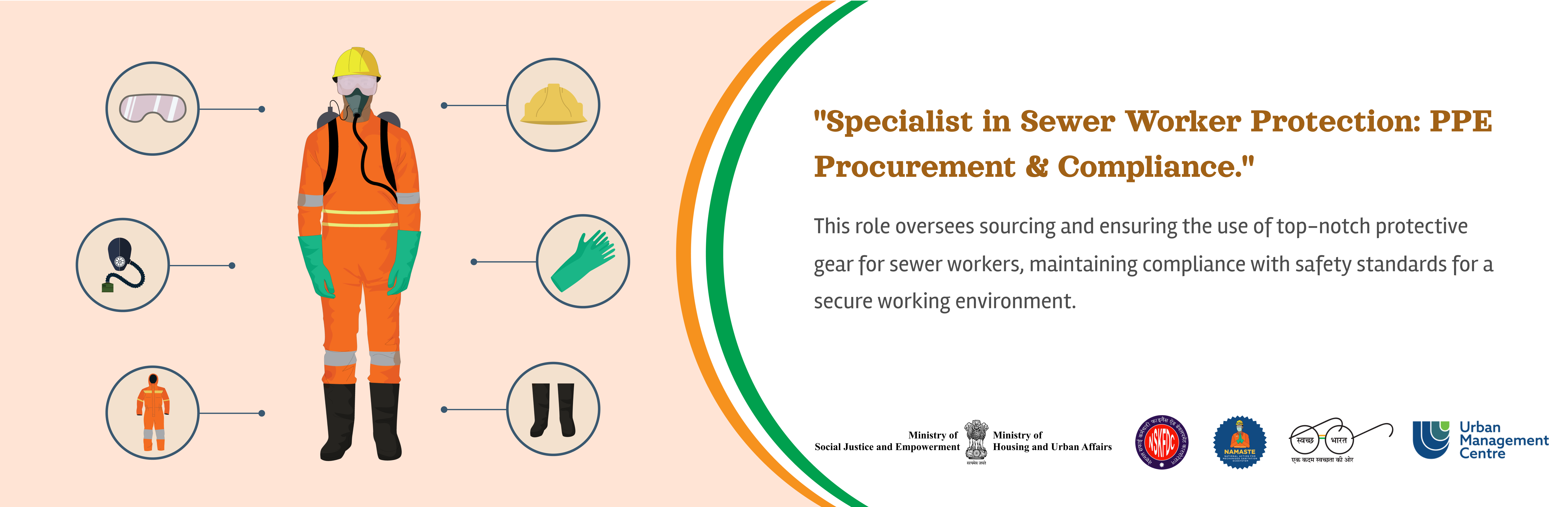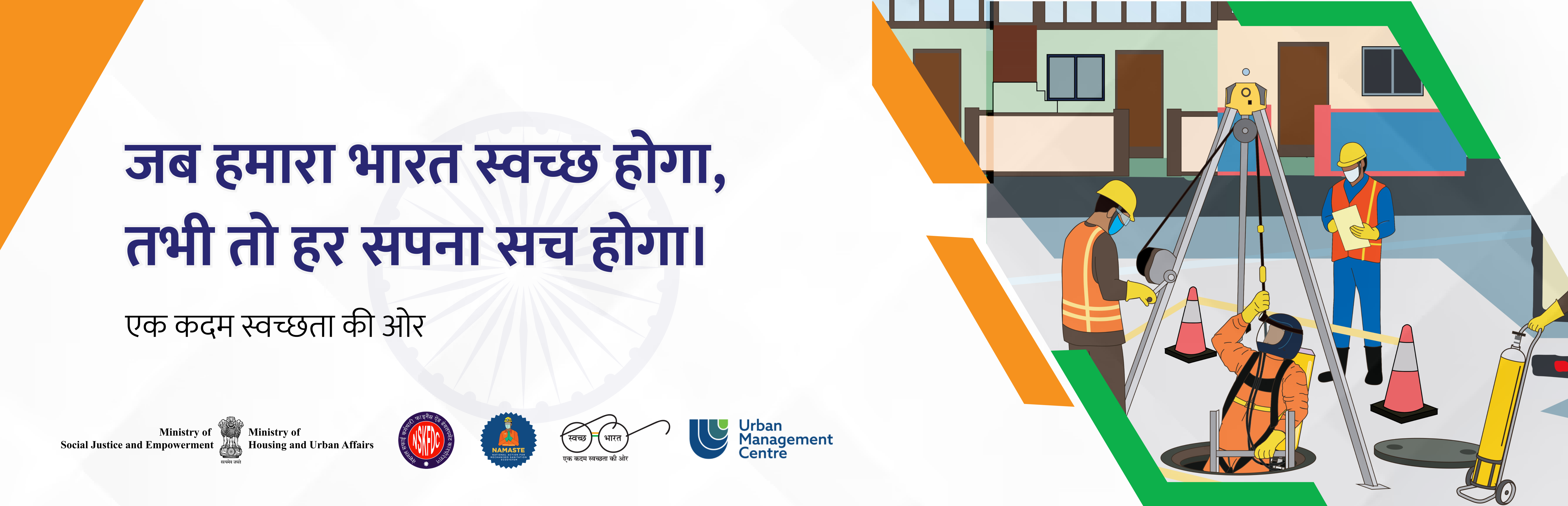 The goal of NAMASTE Scheme is to ensure safety and dignity of sanitation workers in India by creating an enabling ecosystem that recognizes sanitation workers as one of the key contributors in operations and maintenance of sanitation infrastructure there by providing sustainable livelihood and enhancing their occupational safety through capacity building and improved access to safety gear and machines.
